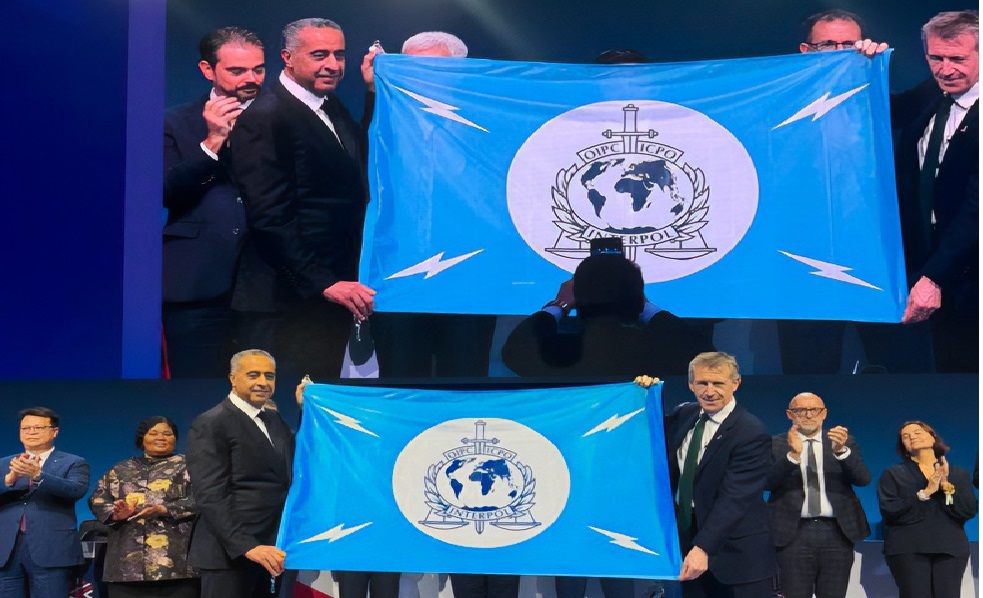 استلام المغرب لعلم الأنتربول إيذانا باحتضان الدورة الثالثة والتسعين للمنظمة الدولية للشرطة الجنائية أنتربول.