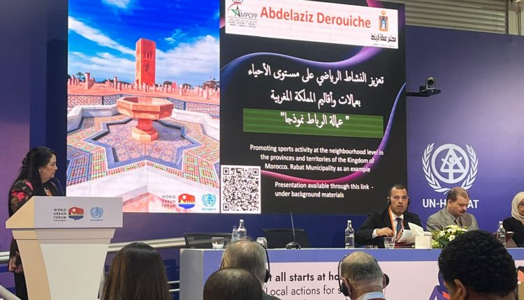 وقد تطرق عبد العزيز الدرويش في مداخلته حول موضوع “تعزيز النشاط البدني على مستوى الأحياء بعمالات وأقاليم المملكة المغربية: عمالة الرباط نموذجا”، ذكر في بدايتها بالاختصاصات الموكلة لمجالس العمالات والأقاليم بالمغرب في مجال التأهيل الاجتماعي في الميادين التربوية والاجتماعية والرياضية، ثم انتقل لتقدم نموذج مجلس عمالة الرباط في مجال التنشيط الرياضي، حيث ذكر بالطفرة التنموية لمدينة الرباط بفضل “برنامج الرباط مدينة الأنوار عاصمة المغرب الثقافية” الذي أطلقه صاحب الجلالة الملك محمد السادس نصره وأيده سنة 2018 الذي مثل ثورة كبيرة من حيث التجهيزات والبنى التحتية، هذا البرنامج الذي شمل كافة المجالات بهدف تعزيز التراث الثقافي وتعزيز الوصول إلى الخدمات والمرافق الاجتماعية المحلية وتحسين إطار عيش السكان وتكريس التنمية المستدامة والاندماج الاجتماعي.