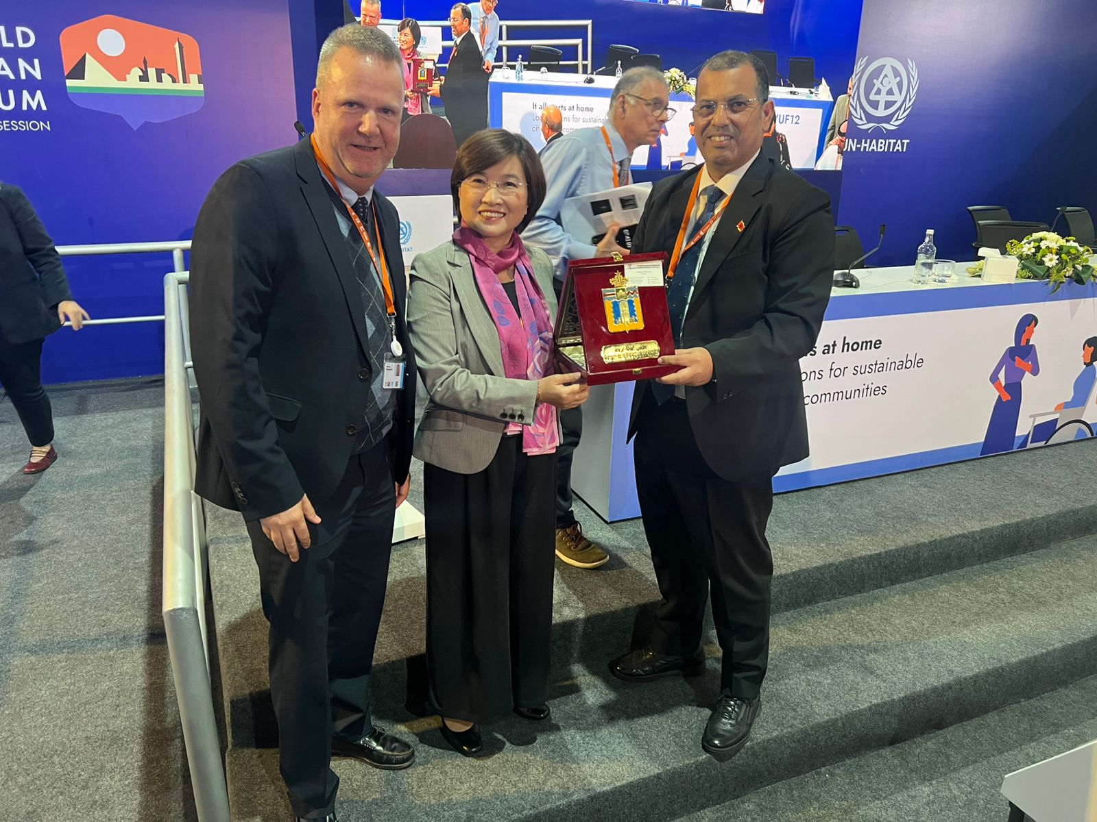من جهة أخرى تبادل السيد رئيس الجمعية هدايا تذكارية مع السيدة Ailan Li مساعدة المدير العام للتغطية الصحية الشاملة/السكان الأصحاء في منظمة الصحة العالمية و السيد Michal Mlynar نائب المدير التنفيذي لبرنامج الأمم المتحدة للمؤسسات الإنسانية، وكذلك السيدة Samar Elfeky مستشارة إقليمية لتعزيز الصحة والمحددات الاجتماعية للصحة، بعد تبادل معهم الحديث حول الاجراءات التي تتبعها بلادنا في مجال الصحة والسكن والتنمية المستدامة واختصاصات الجماعات الترابية في هذا المجال.