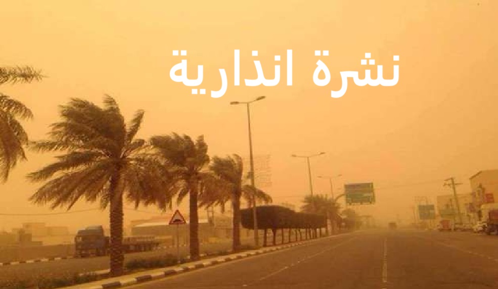 أفادت المديرية العامة للأرصاد الجوية بأن هبات رياح قوية مع تطاير للغبار مرتقبة اليوم الخميس، وهبات رياح قوية على المرتفعات التي تتجاوز 1500 متر مرتقبة اليوم وغدا الجمعة بعدد من أقاليم المملكة.