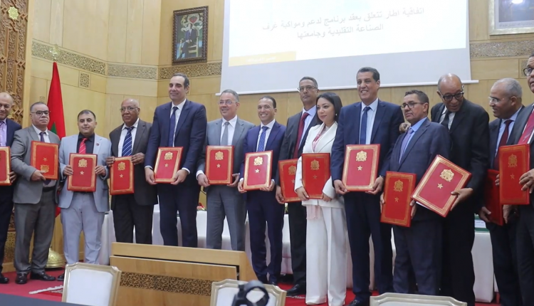 تم اليوم الخميس بالرباط توقيع اتفاقية إطار تتعلق بعقد برنامج لدعم ومواكبة غرف الصناعة التقليدية وجامعتها، تهدف إلى تعزيز دور موقع هذه الغرف باعتبارها شريكا رئيسيا في وضع وتنفيذ البرامج التنموية لقطاع الصناعة التقليدية.