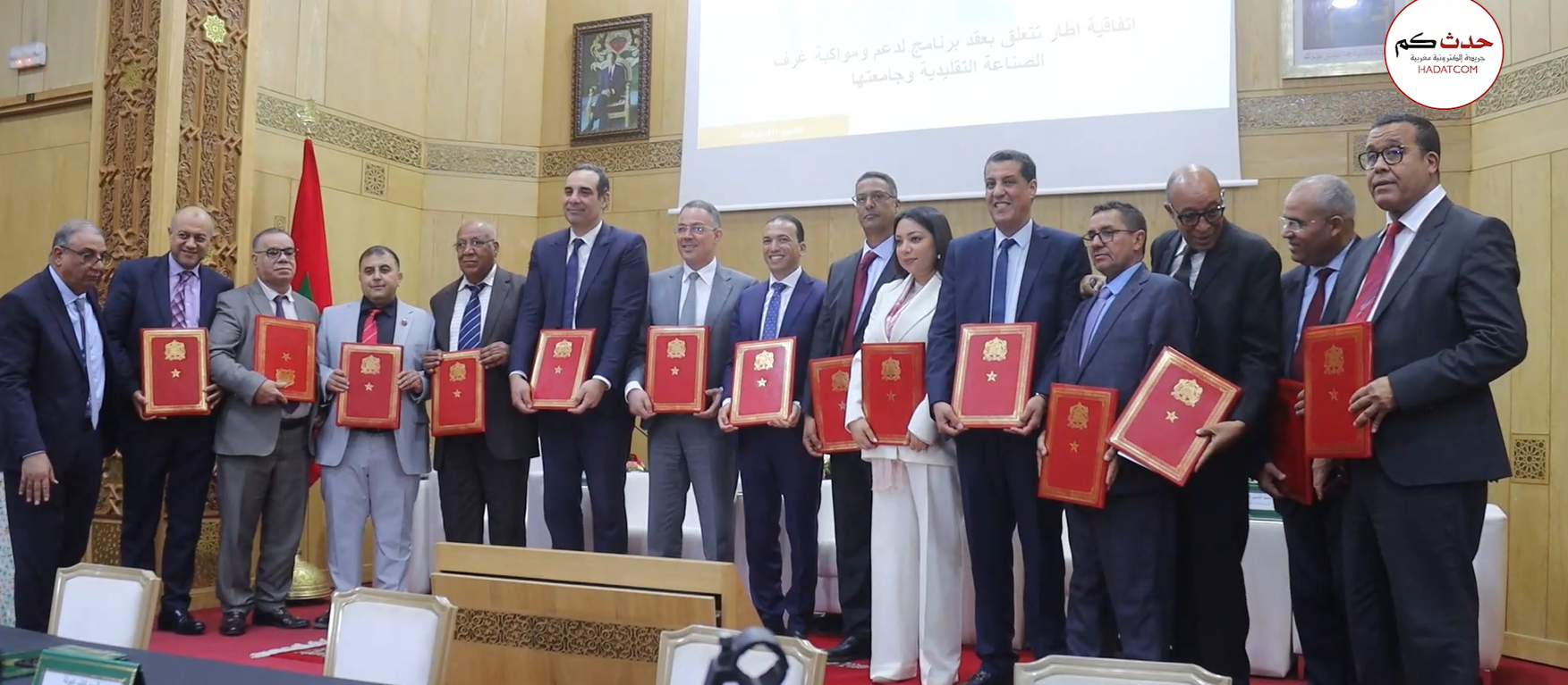 ووقع على هذه الاتفاقية الإطار كل من الوزير المنتدب لدى وزيرة الاقتصاد والمالية، المكلف بالميزانية، فوزي لقجع، وكاتب الدولة المكلف بالصناعة التقليدية والاقتصاد الاجتماعي والتضامني، لحسن السعدي، ورئيس جامعة غرف الصناعة التقليدية، سيداتي شكاف، والمدير العام لمؤسسة دار الصانع، طارق صديق، ورؤساء غرف الصناعة التقليدية.