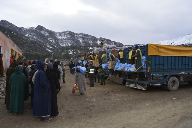 وشملت هذه المساعدات،التي تأتي تنفيذا للتعليمات السامية لصاحب الجلالة الملك محمد السادس الرامية إلى مساعدة سكان المناطق المتضررة من موجة البرد القارس وتساقط الثلوج والانخفاض الشديد لدرجات الحرارة خلال هذه الفترة، أغطية ومواد غذائية (السكر و الزيت والشاي والحليب والدقيق …).