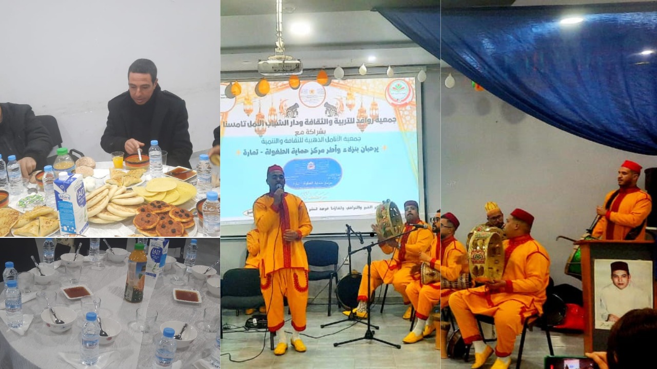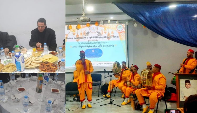 في مبادرة إنسانية تعكس قيم التضامن والتكافل الاجتماعي، نظّمت جمعية روافد للتربية والثقافة ودار الشباب الأمل بشراكة مع جمعية الأنامل الذهبية للثقافة والتنمية، حفل إفطار جماعي على شرف نزلاء مركز حماية الطفولة تمارة، وذلك يوم الأحد 16 مارس 2025 بدار الشباب الأمل بمدينة تامسنا.