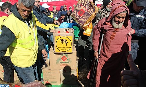 وشملت هذه المساعدات، التي تأتي تنفيذا للتعليمات السامية لصاحب الجلالة الملك محمد السادس الرامية إلى مساعدة سكان المناطق المتضررة من موجة البرد القارس وتساقط الثلوج والانخفاض الشديد لدرجات الحرارة خلال هذه الفترة، أغطية ومواد غذائية (السكر والزيت والشاي والحليب والدقيق …).