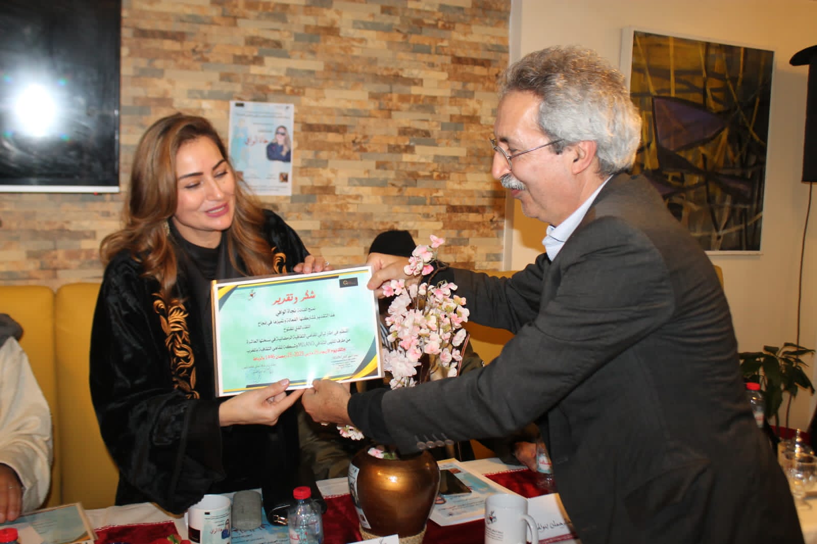 وقبل ختام اللقاء تم تسليم تذكار اللقاء والشهادات التقديرية على المحتفى بها والمساهمين في نجاح المقهى الثقافي .