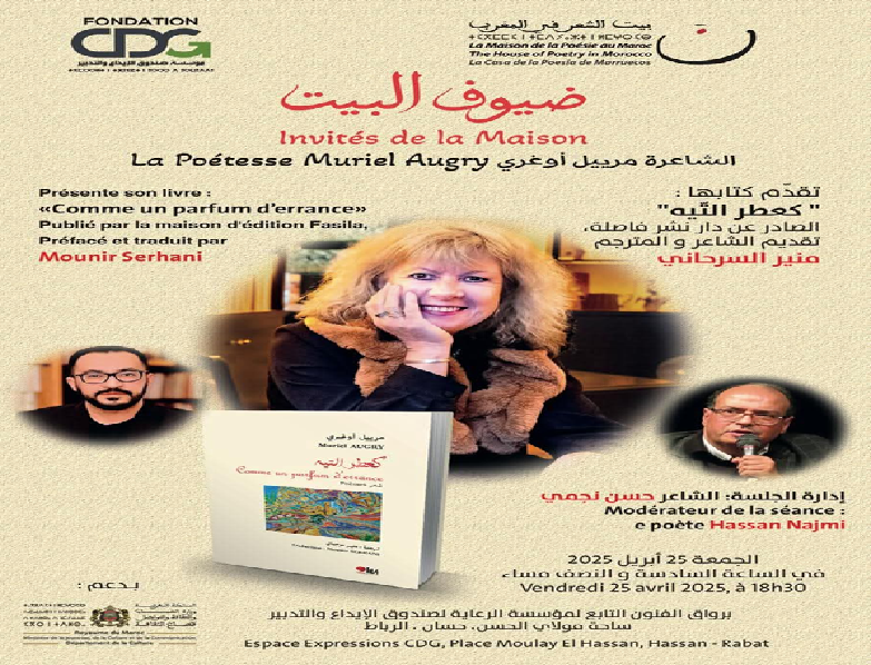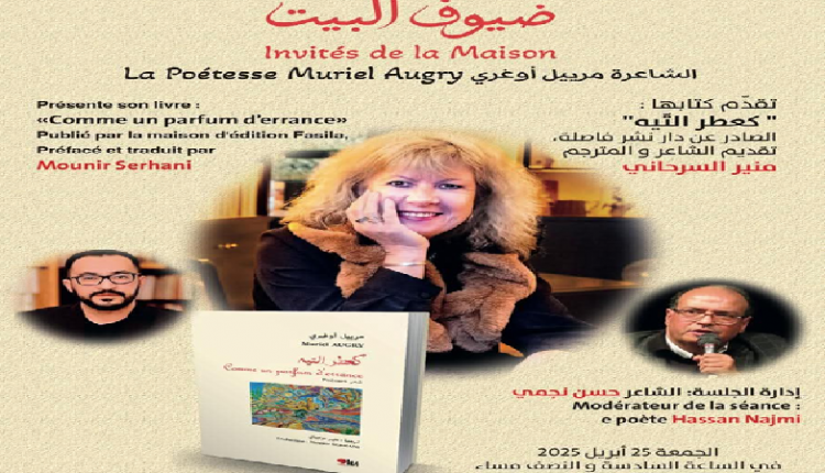 ضمن فقرة “ضيوف البيت”، يُنظّم بيت الشعر في المغرب بشراكة مع مؤسسة الرعاية لصندوق الإيداع والتدبير لقاءً ثقافيا وشعريا مع الشاعرة الفرنسية مرييل أوغري، مع تقديم كتابها الجديد” كعِطر التّيه” الذي قام بترجمته الشاعر والمترجم المغربي منير السرحاني، والصادر عن دار نشر “فاصلة”.
