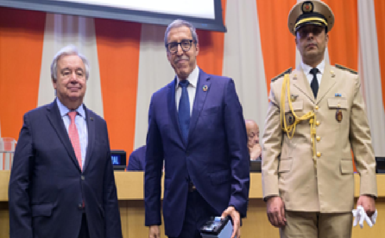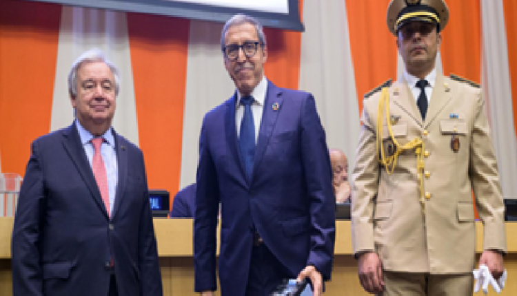 قام الأمين العام لمنظمة الأمم المتحدة، أنطونيو غوتيريش، بتكريم روح جندي من حفظة السلام التابعين للقوات المسلحة الملكية، خلال اللقاء السنوي لتكريم أفراد القبعات الزرق العسكريين والمدنيين الذين لقوا حتفهم خلال عمليات حفظ السلام الأممية، بحضور السفير الممثل الدائم للمغرب لدى الأمم المتحدة، عمر هلال، والمستشار العسكري بالبعثة الدائمة للمملكة لدى الأمم المتحدة، الكولونيل نجيم أسيد.