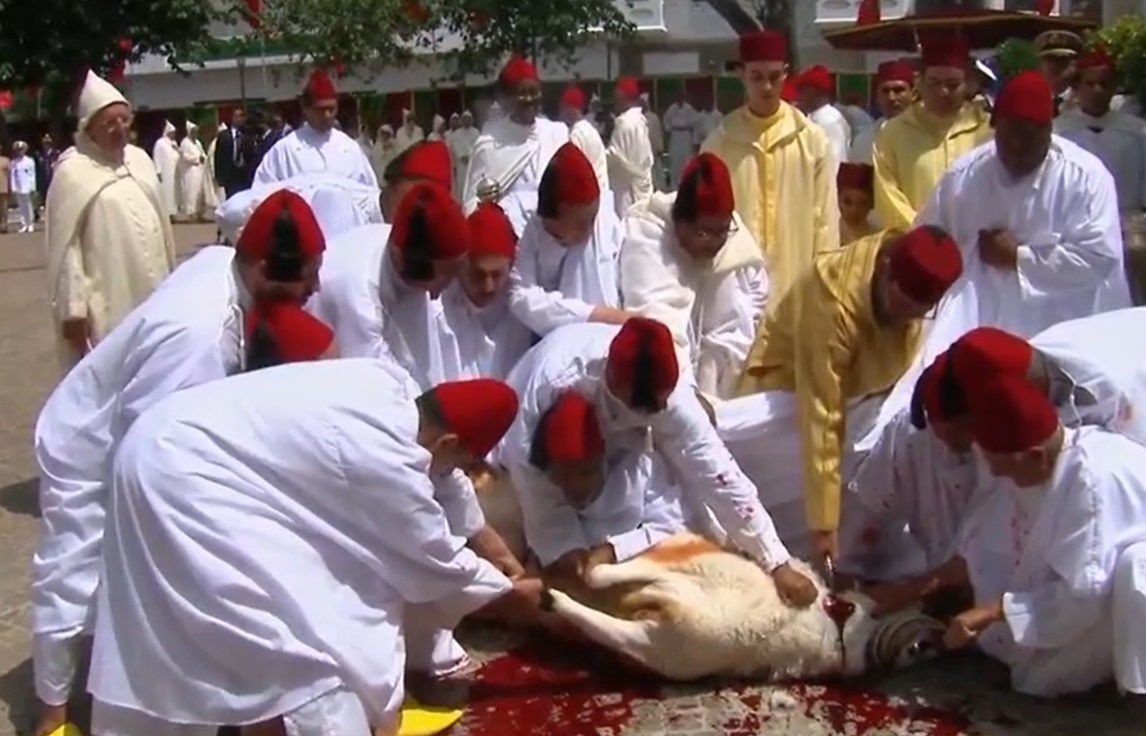 إثر ذلك قام جلالة الملك بنحر أضحيتي العيد، الأولى باسم جلالته والثانية نيابة عن شعبه الوفي، في الوقت الذي كانت تدوي فيه طلقات المدفعية تعبيرا عن البهجة بحلول العيد المبارك.