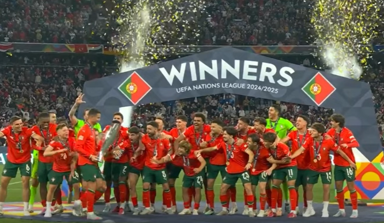 توج المنتخب البرتغالي بلقب دوري الأمم الأوروبية لكرة القدم، عقب فوزه على نظيره الإسباني بضربات الجزاء الترجيحية (5-3)، في المباراة النهائية التي جمعت بينهما، مساء اليوم الأحد، على أرضية ملعب “أليانز أرينا” بألمانيا.