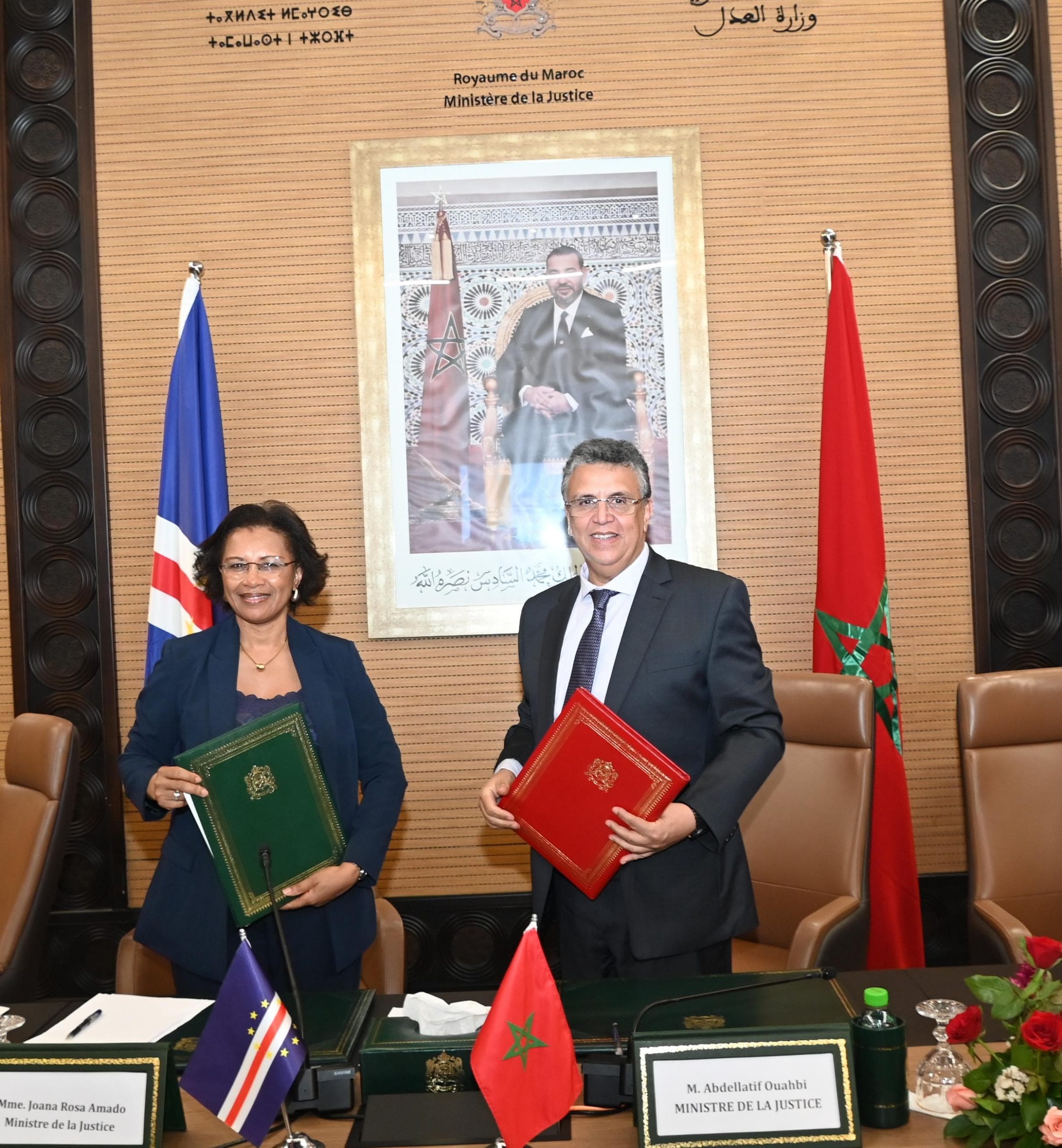 جرت يومه الخميس 19 يونيو 2025 بمقر وزارة العدل، التوقيع على مذكرة تفاهم بين المملكة المغربية وجمهورية الرأس الأخضر، برئاسة عبد اللطيف وهبي، وزير العدل، والسيدة جوانا غوميز روزا أمادو، وزيرة العدل بجمهورية الرأس الأخضر، وذلك في سياق انفتاح بين المملكة المغربية على محيطها الإفريقي، وترسيخًا لروابطها التاريخية والأخوية مع الدول الإفريقية، وتكريسًا لنهج التعاون جنوب – جنوب.
