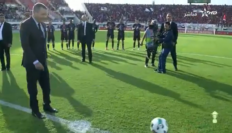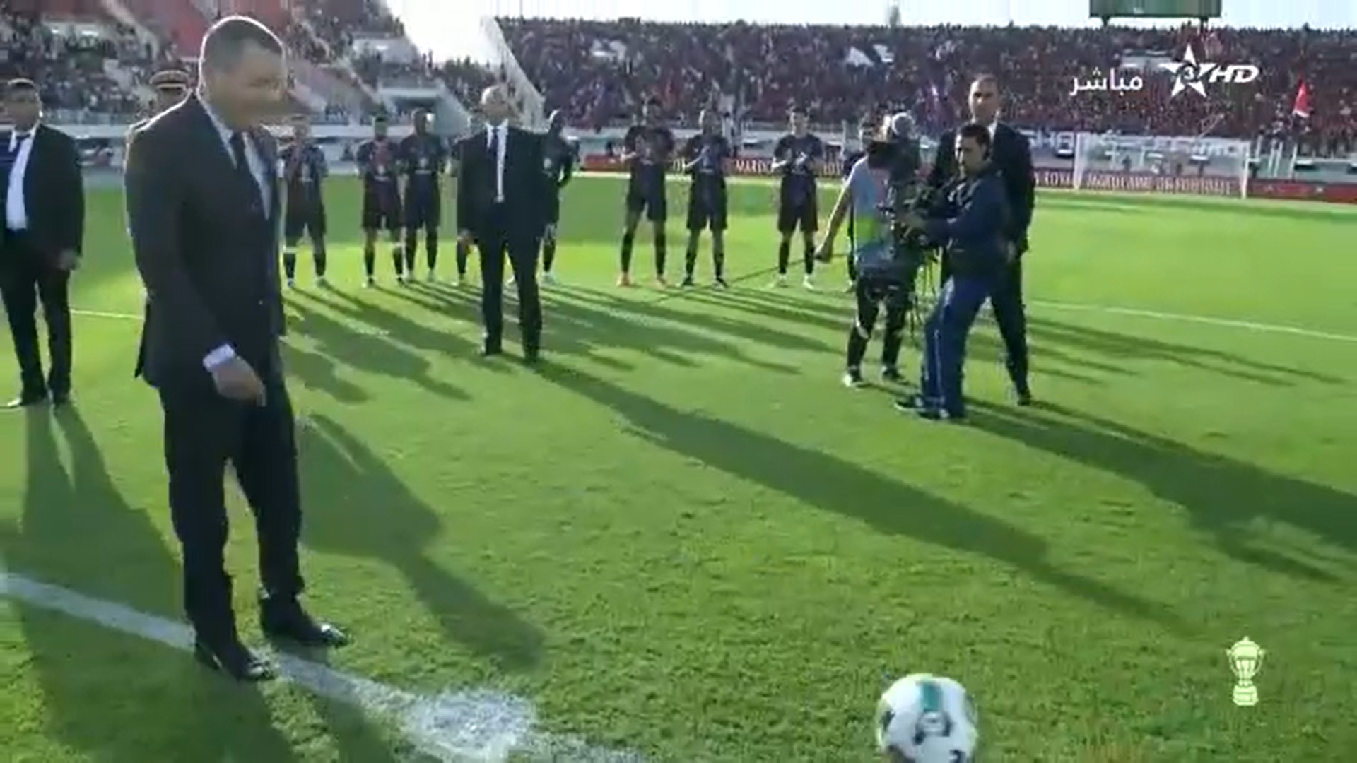 وبعد تحية العلم على نغمات النشيد الوطني، توجه صاحب السمو الملكي الأمير مولاي رشيد إلى أرضية الملعب، حيث تقدم للسلام على سموه أعضاء المكتب المديري للجامعة الملكية المغربية لكرة القدم، ومسيرو ولاعبو الفريقين المتباريين، وحكام المباراة.