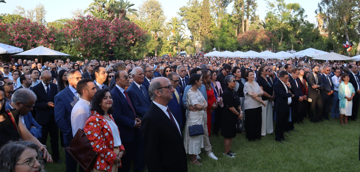 نظمت سفارة فرنسا في المغرب، يومه الاثنين 14 يوليوز2025، حفل استقبال بمقر إقامة سفير فرنسا بالرباط، بمناسبة العيد الوطني لبلاده، بحضور بعض الوزراء المغاربة وعدد كبير من المدعوين ، حيث كان في استقبالهم السفير الفرنسي كريستوف لوكورتيي، والقنصل العام أوليفييه رامادور، إضافة الى قائد السفينة داميان لوبيز، الملحق العسكري لدى السفارة.