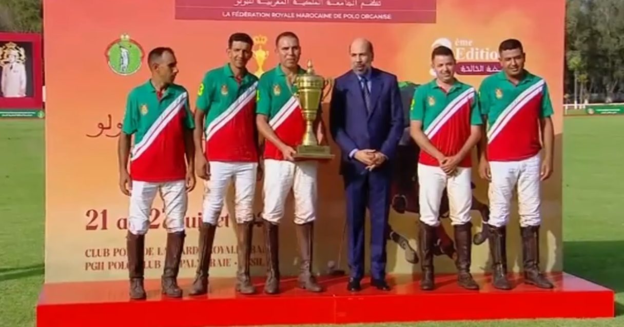 وفي ختام منافسات الدورة الثالثة لكأس العرش للبولو، سلم رئيس الجامعة الملكية المغربية للفروسية مولاي عبد الله العلوي الكأس لعميد الفريق الذي توج بطلا للدورة.
