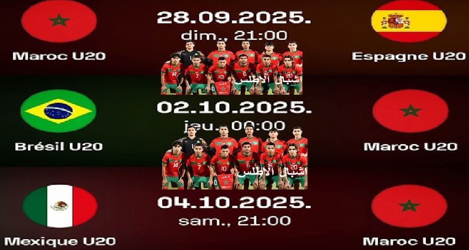 وسيخوض أشبال الأطلس المباريات وفق البرنامج التالي (بالتوقيت المغربي):