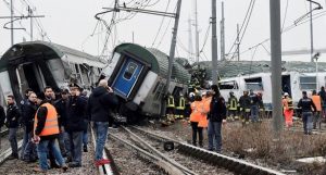 لقي ثلاثة أشخاص على الأقل مصرعهم وأصيب 10 آخرون بجروح بالغة خطورة جراء انحراف قطار عن مساره اليوم الخميس قرب مدينة ميلانو شمال إيطاليا، وفق حصيلة جديدة. وأوضحت إدارة الطوارئ بميلانو أن عدد ضحايا هذا الحادث، الذي وقع صباح اليوم في محطة بيوتيلو ليميتو على بعد 40 كم من ميلانو، يتراوح ما بين ثلاثة إلى خمسة أشخاص ، بينما لا تزال عمليات الإنقاذ مستمرة.