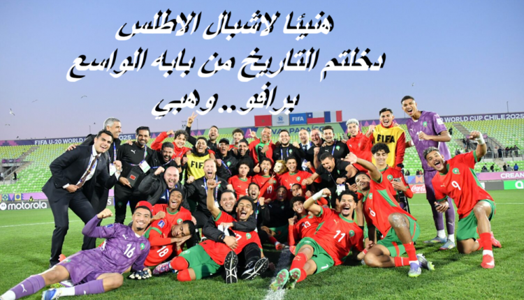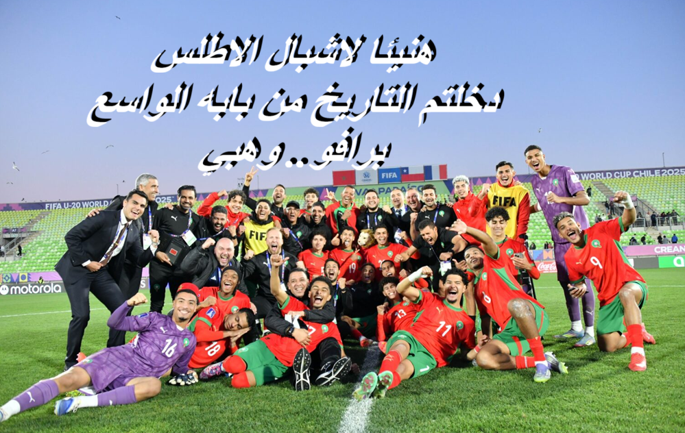 المنتخب الوطني المغربي لأقل من 20 سنة بطلا للعالم عقب تفوقه على نظيره الأرجنتيني بهدفين نظيفين في المباراة التي جمعتهما ،اليوم الاثنين، بالملعب الوطني خوليو مارتينيز برادانوس بالعاصمة الشيلية سانتياغو ،برسم نهائي مونديال (الشيلي 2025 ).