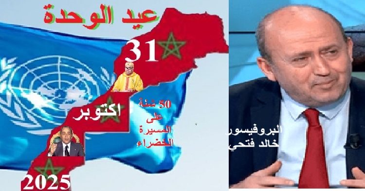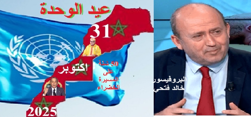 د. خالد فتحي: هناك الاحتفال، وهناك المعنى الكامن في ثنايا الاحتفال، وإذ أعلن جلالة الملك 31 من أكتوبر عيدا وطنيا، فهو بالتأكيد يريد أن يرسخ معنى ما، وقيمة ما في نفوس المغاربة: أن يظل المغرب موحدا في كل الأزمان، حرا أبيا شامخا كشموخ النسر فوق القمة الشماء.