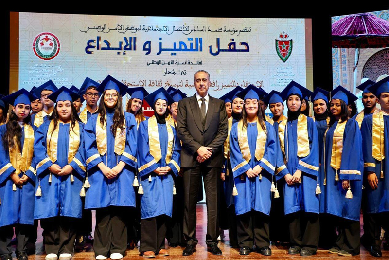 وقد عرف هذا الحفل تكريس التقليد السنوي المتعلق بتكريم أبناء وأيتام أسرة الأمن الوطني، ممن بصموا على نجاح دراسي متميز، وحصلوا على أعلى المعدلات الدراسية في امتحانات الباكالوريا برسم الموسم الدراسي 2025/2024، حيث تم بالمناسبة تسليمهم منحا وجوائز مالية تحفيزية ومشجعة على مواصلة التعليم الجامعي.