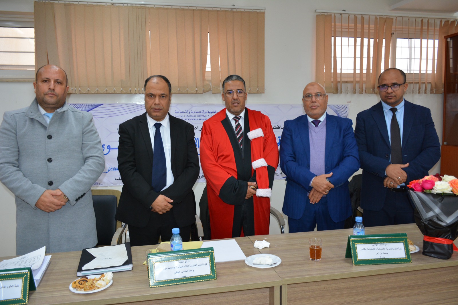 وقد جرت المناقشة أمام لجنة علمية ترأسها الدكتور المهدي الفحصي استاذ التعليم العالي كلية الحقوق بن زهر أكادير وضمّت في عضويتها الدكتور عبد اللطيف الهلالي مشرفا استاذ التعليم العالي بكلية الحقوق جامعة إبن زهر ، والدكتور محمد العابدة أستاذ التعليم العالي كلية الحقوق بجامعة القاضي عياض مراكش و الدكتور محمد المجني أستاذ التعليم العالي كلية الحقوق جامعة إبن زهر ، والدكتور جواد الرباع استاذ محاضر مؤهل كلية الحقوق أيت ملول جامعة بن زهر أكادير،حيث نوهت بأهمية الموضوع وجودة العمل الأكاديمي مع التوصية بالنشر بتقدير جيد جداً.