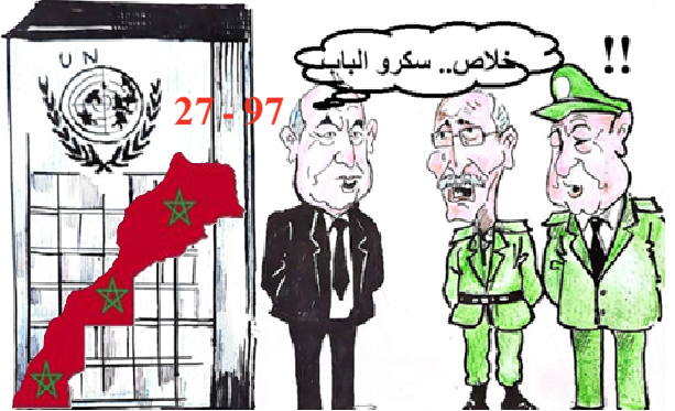 ــ الفشل لازم حكام الجزائر في نهجهم سياسه المحاور الرامية الى خلق التوثرات كمحاولة للإستفادة منها ، كما أن ازدواجية الخطاب السياسي قادهم الى نفق مسدود وهي رهانات مهزوزه محدودة المفعول في الزمن والمكان وتعودوا عليها مرغمين استهواءا للتحدي الذي يمارسونه ضد المغرب وهم بذلك يقومون كمن يريد تربيع الدائرة.