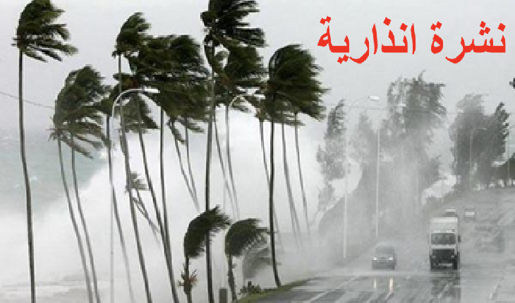 ويرتقب تسجيل الظاهرة الجوية ذاتها (من 75 إلى 85 كلم/س) بعمالات وأقاليم الفحص-أنجرة، وسلا، و فاس، و مولاي يعقوب، و الرباط، ووزان، و تمارة-الصخيرات، و أزيلال، و بني ملال، ومكناس، و الخميسات، و سيدي إفني، والقنيطرة ، وتطوان، والمضيق-الفنيدق، و طنجة- أصيلة، و الحاجب، و خنيفرة، و بن سليمان، و المحمدية، وكلميم، و سيدي سليمان، و سيدي قاسم، و العرائش، و شفشاون، و الحوز، وتزنيت، إلى غاية السادسة من صباح السبت، وكذا بإقليمي شيشاوة و الصويرة غدا السبت من السادسة صباحا إلى الحادية عشرة ليلا.