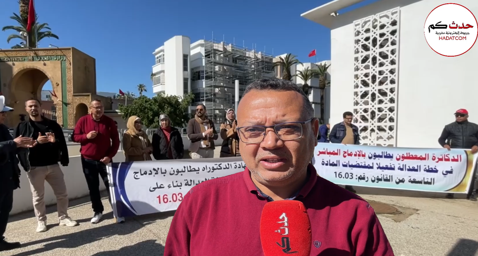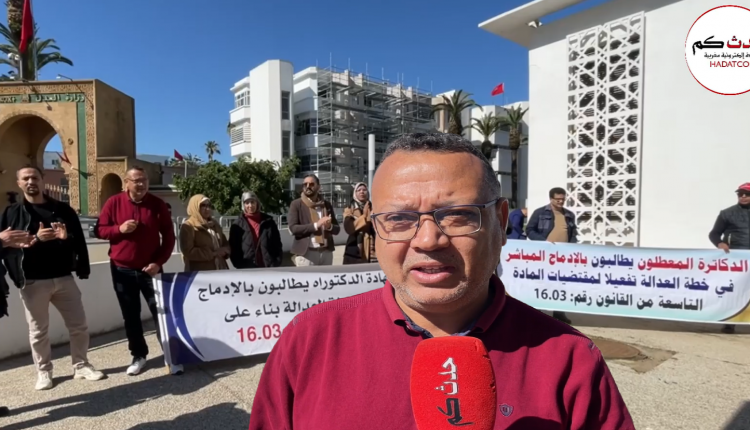 وقفة احتجاجية امام وزارة العدل لتمكين حملة الدكتوراه من الولوج لخطة العدالة الواجهةمجتمع في فبراير 16, 2026 شارك FacebookTwitterLinkedinWhatsAppالبريد الإلكتروني Facebook Twitter Messenger WhatsApp Email