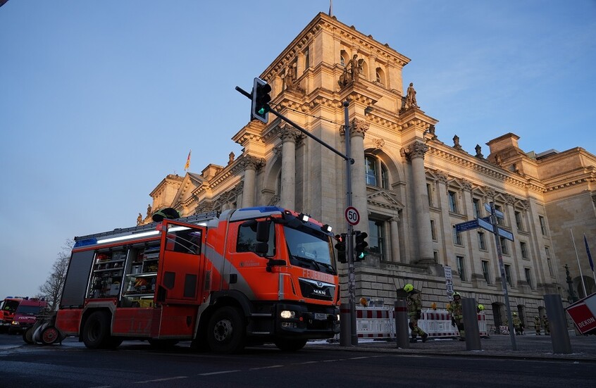 يشهد مبنى الرايخستاغ الذي يضم البرلمان الألماني في برلين عملية انتشار يشارك فيها نحو 80 فردا من قوات الإطفاء.