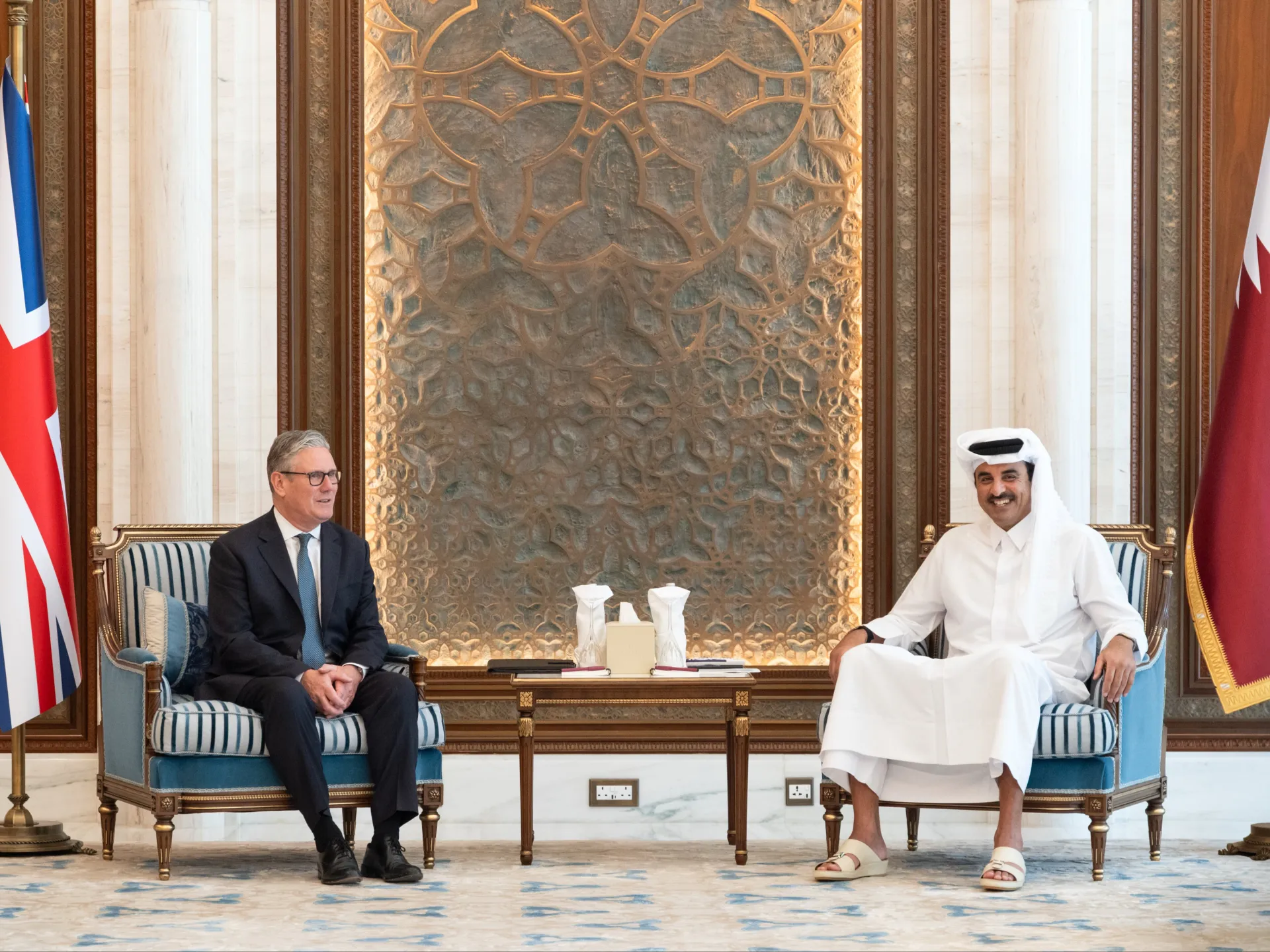 بحث أمير قطر الشيخ تميم بن حمد آل ثاني، اليوم الجمعة، مع رئيس الوزراء البريطاني، كير ستارمر، الذي يقوم حاليا بزيارة للدوحة، تطورات الأوضاع الإقليمية والدولية.