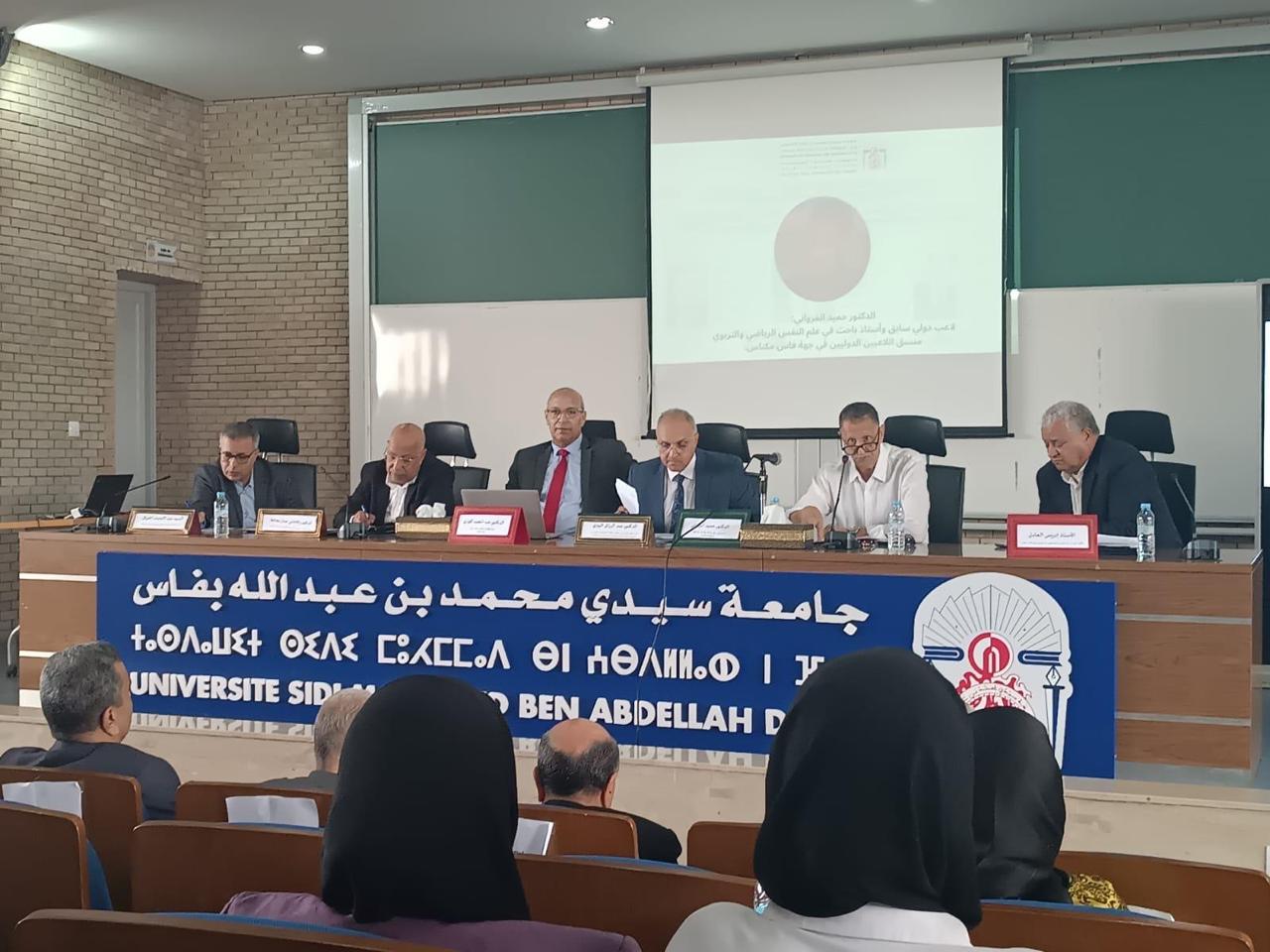 وقد ألقيت خلال الندوة التي نسق فقراتها عبد المجيد كوزي أستاذ القانون الرياضي مداخلات من طرف كل من حميد المرواني، أستاذ التعليم العالي في علم النفس الرياضي، عبد الرزاق الهيري، أستاذ التعليم العالي في الاقتصاد والمالية والتدبير وعبد اللطيف المتوكل رئيس الرابطة المغربية للصحافيين الرياضيين، والكاتب الصحفي جمال المحافظ رئيس المركز المغاربي للدراسات والأبحاث في الإعلام والاتصال والإعلامي وادريس العادل الكاتب العام بجهة فاس مكناس.