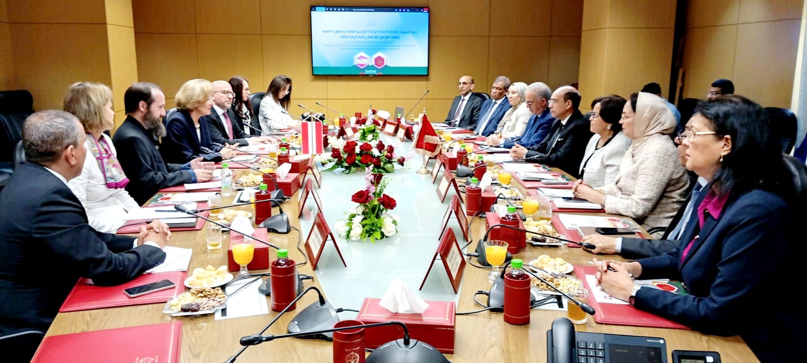 أجرى الوكيل العام للملك لدى محكمة النقض، رئيس النيابة العامــــة، السيد هشام البلاوي، صباح اليوم الإثنين 27 أبريل 2026، بمقر رئاسة النيابة العامة بالرباط، مباحثات مع الوكيلة العامة بجمهورية النمسا، السيدة “مارغريت فاخبيرغر”، التي تقوم بزيارة عمل لبلادنا رفقة وفد رفيع المستوى، في إطار تعزيز علاقات التعاون بين مؤسستي النيابة العامة بكل من المملكة المغربية وجمهورية النمسا، والتي تمتد من تاريخ 26 إلى 28 أبريل 2026.