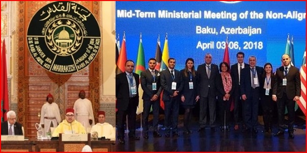 وسجل وزراء خارجية دول حركة عدم الانحياز، في الوثائق التي صدرت عن المؤتمر بعد مداولات مكثفة، تقديرهم للرسالتين اللتين وجههما صاحب الجلالة الملك محمد السادس إلى الأمين العام للأمم المتحدة السيد أنطونيو غوتييريس، في 25 يوليوز 2017 للتعبير عن إدانة جلالته الشديدة للانتهاكات الاسرائيلية للحرم الشريف، وفي 7 دجنبر 2017 في أعقاب قرار الإدارة الأمريكية الاعتراف بالقدس عاصمة لإسرائيل. ومن جهة أخرى، نوه مؤتمر باكو بدور المغرب في مجال حفظ وتعزيز السلم على مستوى الأمم المتحدة، وذلك في إطار رئاسته هيئة جمهورية افريقيا الوسطى، وكذا من خلاله دوره كمنسق لمجموعة العمل التابعة لحركة عدم الانحياز المكلفة بعمليات حفظ السلام الأممية.