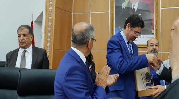 تسلم السيد محمد عبد النباوي الوكيل العام للملك رئيس النيابة العامة ، اليوم السبت بفاس ، درع الاتحاد الدولي للمحامين.