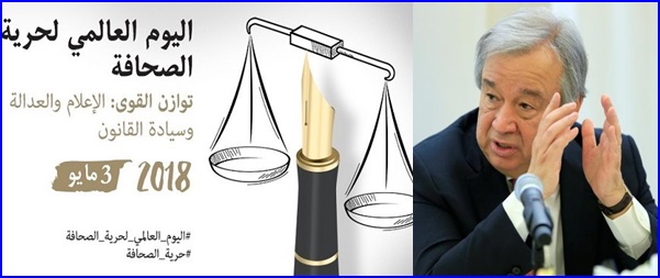 الأمين العام للأمم المتحدة: وجود صحافة حرة هو أمر أساسي لتحقيق السلام والعدالة وضمان حقوق الإنسان للجميع !