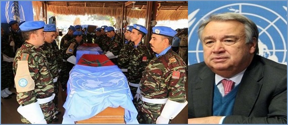 وقال السيد غوتيريس، في رسالة موجهة إلى السفير الممثل الدائم للمغرب لدى الأمم المتحدة، السيد عمر هلال، توصلت وكالة المغرب العربي للأنباء بنسخة منها اليوم الأحد، “بأسف عميق أخذت علما بوفاة العريف الأول رشيد أبركي، أحد أفراد التجريدة المغربية ضمن بعثة المينوسكا في 24 أبريل 2018”.