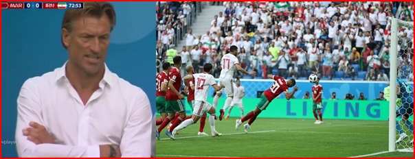 بعد انتهاء مباراة المغرب ضد إيران ، وفوز المنتخب الإيراني بهدف لصفر، سجله اللاعب المغربي ضد مرماه في الدقائق الاخيرة من نهاية المقابلة، قال مدرب المنتخب المغربي هيرفي رونار:” أشعر بخيبة أمل كبيرة بالنظر إلى سير المباراة والفرص التي خلقناها .الفريق افتقد إلى الدقة في اللمسة الأخيرة، كما فقدنا الكرة في بعض الأحيان بطريقة غير اعتيادية ، أمام فريق كان ينتظر في نصف ملعبه، والذي نعرف نقطة قوته“.