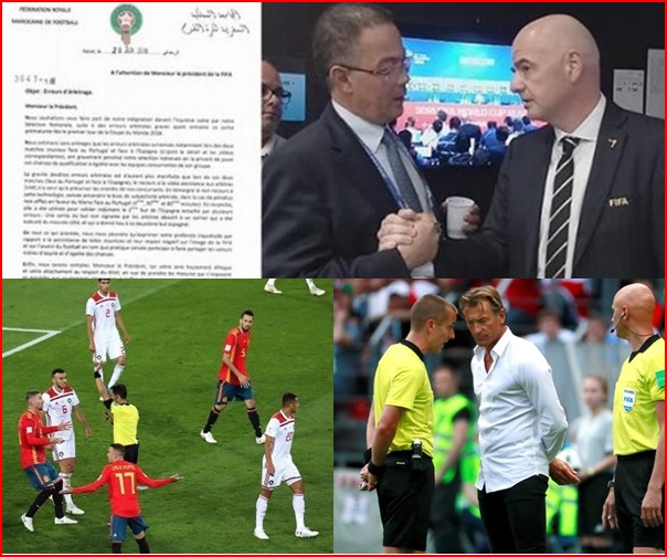 راسلت الجامعة الملكية المغربية لكرة القدم، اليوم الخميس ، رسميا الإتحاد الدولي لكرة القدم “فيفا” بشأن الأخطاء التحكيمية الجسيمة التي تعرض لها المنتخب الوطني في مبارياته في نهائيات كأس العالم روسيا 2018 خاصة ضد منتخبي البرتغال وإسبانيا.
