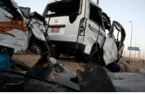 وذكرت وكالة أنباء “الشرق الأوسط، أن الحادث نجم عن تصادم حافلة نقل صغيرة بسيارة أجرة، بقرية (زاوية العوامة) مركز الضبعة على مستوى طريق مطروح- الإسكندرية، مما أسفر عن مصرع 10 أشخاص وإصابة 25 آخرين.
