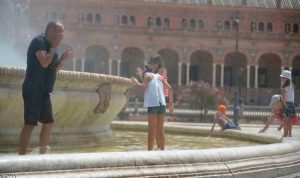 وتشهد إسبانيا موجة حر شديدة منذ بداية الشهر الجاري أدت إلى ارتفاع درجات الحرارة إلى مستويات قياسية بلغت في بعض المناطق 44 و 45 درجة مأوية .