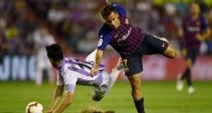 انفرد برشلونة حامل اللقب موقتا بصدارة الدوري الإسباني لكرة القدم بعد تحقيق فوزه الثاني تواليا على حساب مضيفه ريال بلد الوليد 1-صفر بهدف من الفرنسي عثمان ديمبيلي.