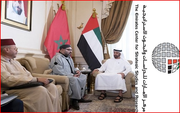 أكد مركز الامارات للدراسات والبحوث الاستراتيجية ان المباحثات التي أجراها صاحب الجلالة الملك محمد السادس أمس الاثنين في ابوظبي مع صاحب السمو الشيخ محمد بن زايد آل نهيان ولي عهد أبو ظبي، نائب القائد الأعلى للقوات المسلحة الاماراتية ،”عبرت بوضوح عن حرص الدولتين على تطوير العلاقات الثنائية، والارتقاء بها إلى آفاق أرحب وأوسع في المجالات كافة”.