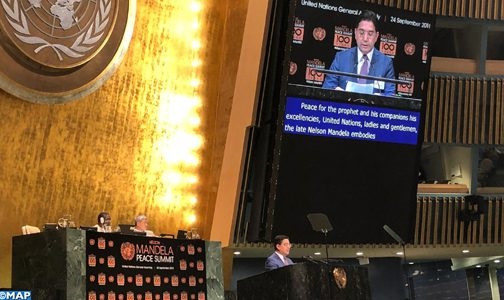 وجه صاحب الجلالة الملك محمد السادس، نصره الله، اليوم الإثنين، رسالة الى المشاركين في قمة نيلسون مانديلا للسلام المنعقدة بمقر الأمم المتحدة في نيويورك، والتي تلاها وزير الشؤون الخارجية والتعاون الدولي، السيد ناصر بوريطة وفي ما يلي نص الرسالة الملكية: