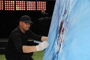 وهكذا، وبعد اختتام الطبعة الثانية من أسبوع الفن والتلوين الذي نظمه في مسرح محمد الخامس الوطني، في مارس الماضي، استجاب لدعوة من اجل عرض لوحاته التشكيلية بلوس أنجليس في الولايات المتحدة الامريكية وبصورة أدق في منطقة “The Royals” المرموقة في منطقة بيفرلي هيلز.