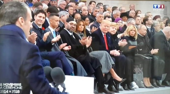 وأمام رؤساء الدول والحكومات والشخصيات السامية الحاضرة، قال السيد ماكرون ” نحن جميعا، في هذا اليوم، 11 نونبر 2018، علينا إعادة التأكيد أمام الشعوب على مسؤوليتنا في نقل للأجيال المستقبلية العالم،الذي طالما تطلعت إليها الأجيال السابقة ” داعيا نظرائه إلى مواجهة بشكل جماعي المخاطر المتمثلة في التغيرات المناخية والفقر والجهل.