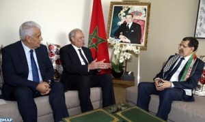شكل تعزيز التعاون الثنائي ومستجدات الوضع في الأراضي الفلسطينية المحتلة محور المباحثات التي أجراها، اليوم الأربعاء بالرباط، رئيس الحكومة السيد سعد الدين العثماني مع السيد زياد أبو عمرو، نائب رئيس الوزراء الفلسطيني عضو اللجنة التنفيذية لمنظمة التحرير الفلسطينية ورئيس دائرة العلاقات الدولية.