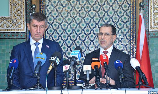 أكد رئيس الحكومة، السيد سعد الدين العثماني، والوزير الأول التشيكي أندري بابيس، اليوم الثلاثاء بالرباط، أن البلدين تحذوهما إرادة راسخة لإعطاء نفس جديد لعلاقات التعاون الثنائية في مختلف المجالات واستثمار الإمكانات الاقتصادية التي يزخر بها البلدان، وذلك بهدف تعزيز التبادلات التجارية.