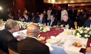 حضر هذه المأدبة الأمين العام للأمم المتحدة السيد أنطونيو غوتيريس، ورؤساء الوفود المشاركة في هذا المؤتمر الدولي الذي شهد المصادقة الرسمية على الميثاق العالمي من أجل هجرة آمنة ومنظمة ومنتظمة، إلى جانب شخصيات أخرى.