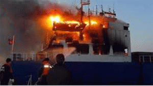 واوضح المصدر في بيان اوردته وسائل اعلام فرنسية ، ان النيران اشتعلت في السفينة بينما كانت توجد على بعد 142 ميل بحري (نحو 263 كلم) الى الجنوب الغربي.