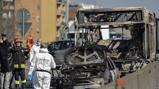 وقال ممثل النيابة في ميلانو ،فرانشيسكو غريكو ، ” إنها معجزة. كدنا نشهد مجزرة. تصرفت الشرطة بشكل رائع. اعترضت الحافلة وأخرجت التلاميذ منها “.