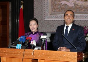 كما أعربت رئيسة الجمعية الوطنية للفيتنام عن عزمها الدفع بالعلاقات بين المؤسستين التشريعيتين إلى فضاء أرحب من التعاون والتشاور، وكذا تفعيل عمل مجموعة الصداقة البرلمانية الفيتنامية-المغربية بالجمعية الوطنية للفيتنام. وأكدت دعمها لطلب المغرب الانضمام للجمعية البرلمانية لدول جنوب شرق آسيا كعضو ملاحظ، مشيرة إلى أن “المغرب صديق كبير، والمغاربة ساهموا في تحرير الفيتنام خلال المرحلة الاستعمارية، ويوجد بهانوي باب بناه المغاربة يشهد على الإرث التاريخي المشترك بين الشعبين”.
